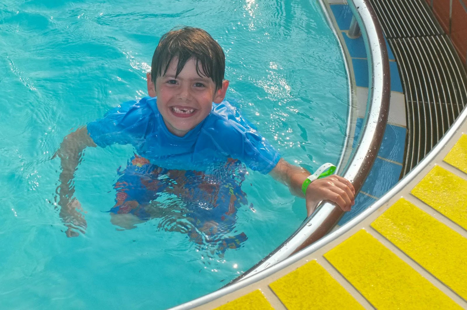 After lunch, we headed back to our rooms, put on swimsuits and hit the pool. This is where we spent most of our daytime hours while we were on the ship. The Elation had a great waterslide that the kids loved!