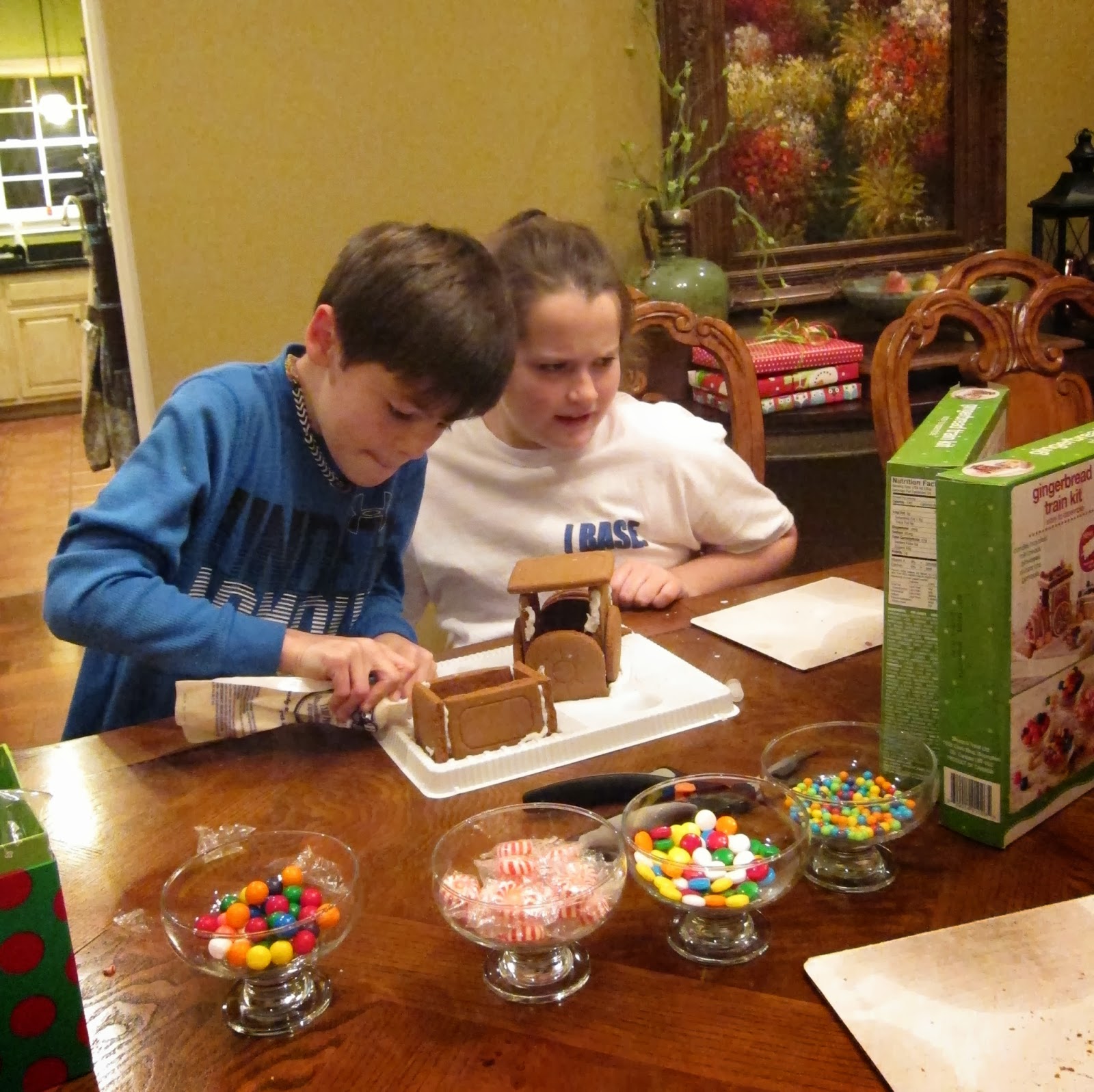 The kids decorated gingerbread trains this year. The youngest three still really enjoy it. Anna Grace was happy to pose for a few pics, but wasn't too interested in the actual decorating this year.